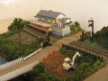 【販売終了】 「センサー感知式自動踏切警報機/車両点灯装置付鉄道模型ミニジオラマNo3駅舎と川」センサーにより踏切が自動的に点滅・警報音が作動、車両のヘッドライトやテールライト、車内灯、駅舎等が自動点滅、自動的に終了する鉄道模型ミニジオラマ!玄関やオフィスの入り口などに置いておけば、お客様を踏切の信号音でお出迎え!鉄道好きの方への贈り物にも最適です!街灯2本も踏切に合わせて自動点灯。約20秒後に自動的に停止・消灯するスグレものです。電源はAC100V家庭用電源専用。